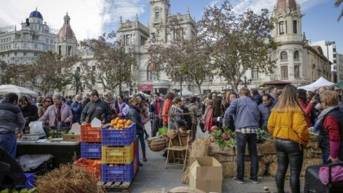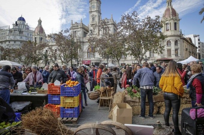 La plaça de l'Ajuntament es va convertir ahir en un espai de trobada ciutadana, en el qual es van reunir nombroses parades de producte agrícola, fresc i elaborat; de material artesà; i un espai per al consum i degustació. També es van preparar activitats d'animació infantil, actuacions musicals, exposicions, tallers i difusió d'entitats, així com exposició de projectes relacionats amb els mercats de proximitat a la ciutat, la pesca, l'agroecologia, la defensa del territori i la sobirania alimentària.En total, han participat 55 llocs de venda directa, més altres 10 de menjar i beguda per a consumir en el moment: 18 entitats amb certificació d'agricultura ecològica de la Comunitat Valenciana; 16 entitats amb sistema participatiu de garantia, alguns d'ells a més amb certificat CAECV; 11 de PROAVA, alguns amb segell CAEVC; 7 agricultors de la tira de comptar de Mercavalencia i 2 de la tira de comptar de Mosen Sorell. A més, s'han presentat 4 projectes d'inserció laboral a través del treball agrícola.