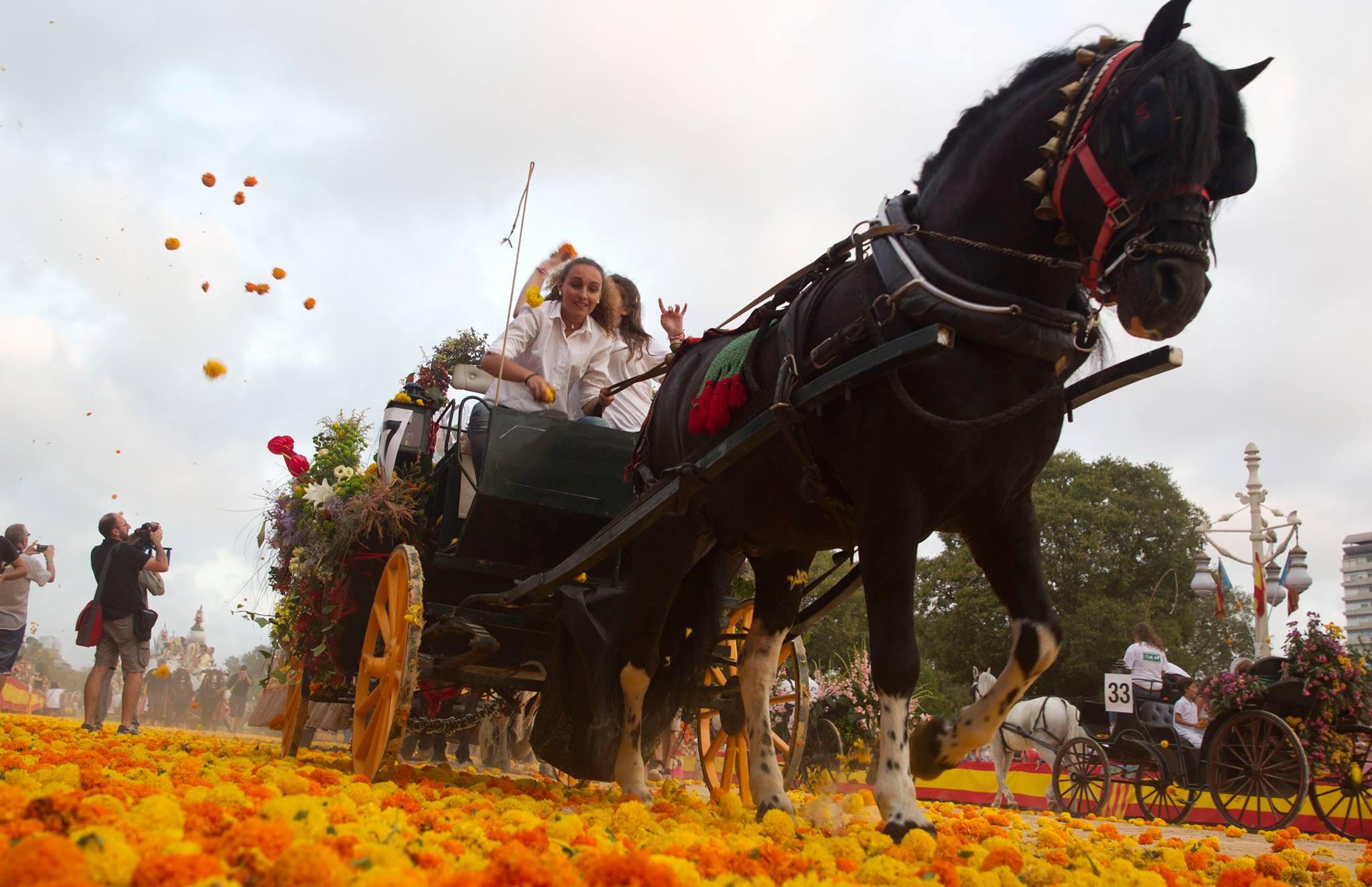 A continuació, és el moment de la desfilada de carrosses que, cada any, sorprén pels seus dissenys arriscats i el seu color. Després del lliurament de premis, sona l'avís que dona inici a la gran batalla de flors que transformarà el passeig de l'Albereda en un mantell gegant de flors. I és que este és el moment en el qual les persones que es troben en les llotges comencen a llançar milers de flors als i les participants que van pujades a les carrosses, mentre estes intenten esquivar-les amb una raqueta.