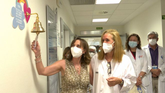María de la Mar Martínez ha sigut la primera pacient oncològica de l'hospital La Fe de València que ha celebrat la seua cura del càncer tocant una de les campanes instal·lades per a celebrar el final del tractament. Un acte molt emotiu que, a partir d'ara, podran gaudir totes aquelles persones que superen la malaltia.