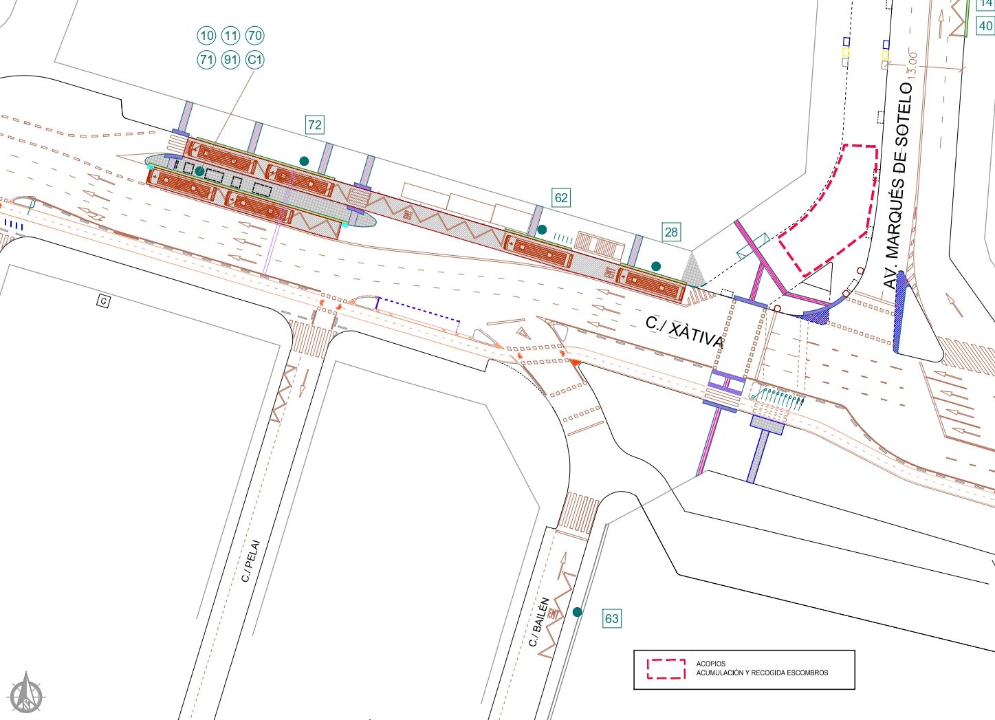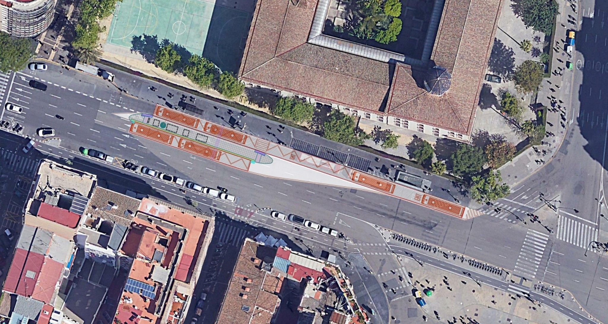 Tal com pot apreciar-se en la superposició del projecte, el nou intercanviador suposarà no sols adaptar la vorera actual i instal·lar noves parades, sinó la creació d'una nova illeta on podran realitzar parada altres dos autobusos. L'obra que ahir a la nit va iniciar es va licitar el novembre passat i, junt amb l'intercanviador de Tetuan-Porta de la Mar, completarà les opcions de transbord entre línies en el centre de València, en connexió amb la resta de la ciutat.