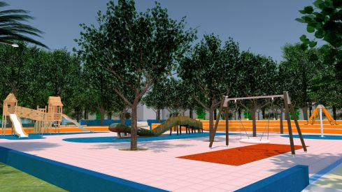 El projecte contempla també dues zones de jocs infantils diferenciades per edats. Una per als més xicotets (4 a 6 anys) en la part alta central de la zona nord i una altra per a xiquets i xiquetes de 7 a 12 anys. Cadascuna comptarà amb elements apropiats per a cada edat: gronxadors, cavallets i jocs inclusius entre altres. També es contempla una zona per a adolescents en la zona sud, amb mobiliari entre l'arbratge existent que permetrà que diverses persones s'asseguen a xarrar.