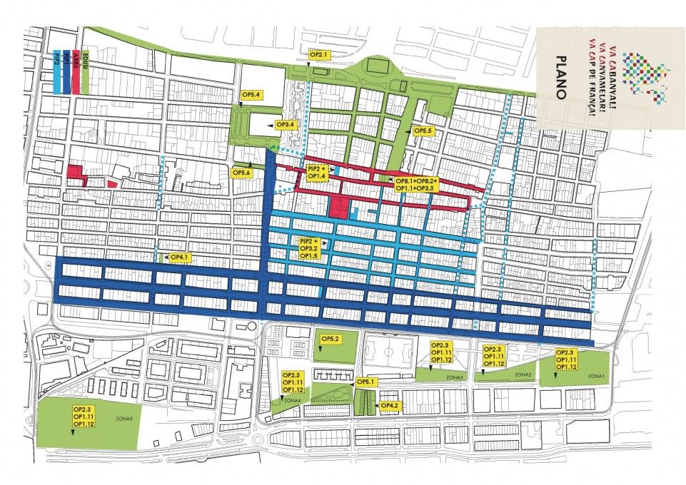 Plànol de les intervencions al barri del Cabanyal.
