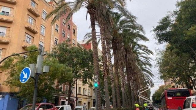 En les palmeres, els treballs consistiran en l'eliminació de palmes seques i fructificacions per raons de seguretat i neteja. Específicament en les washingtònies només s'eliminaran les palmes seques per davall dels 5 metres d'alçada, tal com marquen els criteris tècnics. Pel que fa als ficus, s'efectuarà una revisió i si fora necessària, una poda lleugera d'eliminació de branques trencades o seques i en la reducció o eliminació de branques que afecten façanes i serveis públics, així com un refaldat dels mateixos en cas d'interferències amb vianants o vehicles. Es durà a terme una poda que afavorisca la penetració de llum en els habitatges confrontants. Amb les acàcies del Japó es realitzarà poda per a evitar interferències amb les façanes, revisió i ocasionalment eliminació de branques seques.