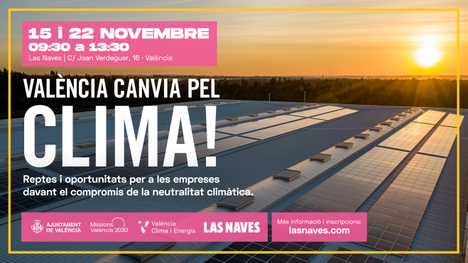 Els reptes i oportunitats per a les empreses de la ciutat de València enfront del compromís de la neutralitat climàtica i la descarbonització centraran la nova convocatòria de la iniciativa València Canvia Pel Clima!, un esdeveniment que tindrà lloc al centre d'innovació Las Naves els dilluns 15 i 22 de novembre, i podrà seguir-se tant de manera presencial com en línia. Tal com ha destacat el regidor d'Emergència Climàtica i Transició Energètica, Alejandro Ramon, "seguint la línia de la Missió València Ciutat Neutra, en esta ocasió es fa una crida a participar en les grans, mitjanes i xicotetes empreses de la ciutat per a implicar-les en la descarbonització i donar-los les claus en la reducció de les emissions de CO₂".