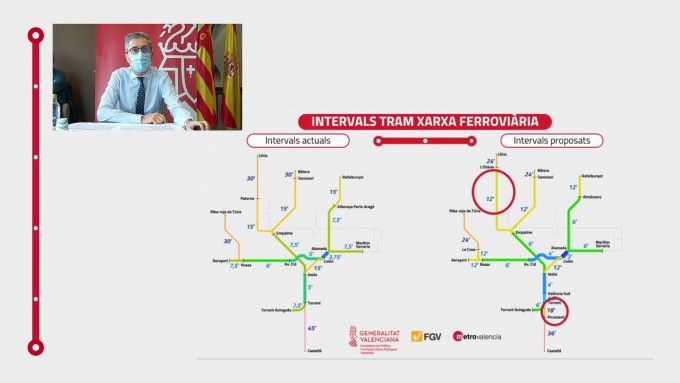 El servei de Metrovalencia continua incorporant millores que segueixen la línia de convertir-se en una alternativa real al transport privat. D'aquesta manera, a més de l'augment de freqüències durant els mesos d'estiu o la posada en marxa del servei nocturn de metro – interromput per la pandèmia des de març de 2020 –, ara el conseller de Política Territorial, Obres Públiques i Mobilitat, Arcadi España, ha anunciat una inversió de 235 milions d'euros, per als pròxims anys, que es destinaran a millorar les freqüències de la xarxa de Metrovalencia.