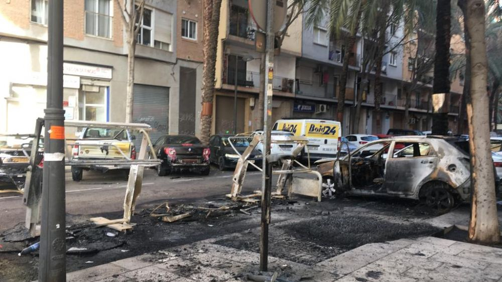 Mundina ha exigit a Ribó que intensifique la freqüència de recollida de residus, el manteniment de les "illes" de contenidors i una major vigilància en la zona per a evitar actes vandàlics com aquest.