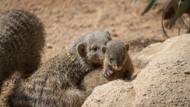 Ventrades de dues espècies de mangostes, ratllades i nanes, han nascut recentment en Bioparc València. Es tracta de mamífers d'aspecte molt similar, però amb diferències, segons ha indicat aquest recinte en un comunicat. Així, ha assenyalat que els últims naixements mostren dues estratègies molt diferents de reproducció entre les mangostes que s'evidencia en una única parella fèrtil en tot el grup en el cas de les nanes i de criança compartida en les ratllades.Bioparc ha destacat que un dels seus principals objectius és "mostrar la rica biodiversitat" del planeta i "conéixer la impressionant varietat d'estratègies de supervivència" i ha valorat, en aquest sentit, els nous naixements de mangostes. Així, ha assegurat que la "satisfacció" és "màxima" per a tot el seu equip.El parc ha explicat que els nous exemplars pertanyen a dues espècies molt similars. Igualment, ha ressaltat que les mangostes nanes i ratllades estan incloses en la llista roja de la UICN (Unió Internacional per a la Conservació de la Naturalesa), de moment amb "preocupació menor" i ha afirmat que la principal amenaça a la qual s'enfronten en la naturalesa és la destrucció del seu hàbitat.El grup de mangostes ratllades (Mungos mungo) de Bioparc és dels més nombrosos a Espanya, amb 57 individus, ha subratllat el recinte, que ha agregat que ara han nascut dues ventrades, una de dues cries i una altra de 13.El parc ha detallat que després del part, les cries romanen en el niu al voltant de dues setmanes i que és a partir de llavors quan li les pot veure en la zona de la sabana, prop de l'aviari i del Kopje, on es troben els lleons.Per part seua, les mangostes nanes (Helogale parvula undulata) habiten en la recreació d'un termiter en la zona de la sabana de Bioparc, al costat del cau de l'oricteropo. La ventrada nouvinguda la componen dues cries. El seu recinte està tancat de la vista del públic de manera temporal per a no alterar la criança dels nous exemplars.Bioparc ha insistit que encara que tenen un aspecte similar i comparteixen l'organització en comunitats col·laboratives, aquestes mangostes pertanyen a "dues espècies molt diferents". La grandària més gran i el característic dibuix de les ratllades permet reconéixer-les fàcilment, ha apuntat.El parc ha destacat com "més interessant" que han desenvolupat estratègies reproductives "molt diferents" i ha asseverat que en elles "la jerarquia és determinant". En el cas de les mangostes nanes, el lloc de major rang l'ocupa la femella de major edat, seguida del seu company, amb el qual sol romandre per a tota la vida com l'única parella fèrtil de tot el grup.En aquest cas, la resta de femelles estan inhibides, ja que la dominant allibera unes hormones en la seua orina que suposa un senyal perquè perden la seua capacitat reproductora, ha indicat. Els altres membres de la colònia participen en la cura i alimentació dels xicotets.