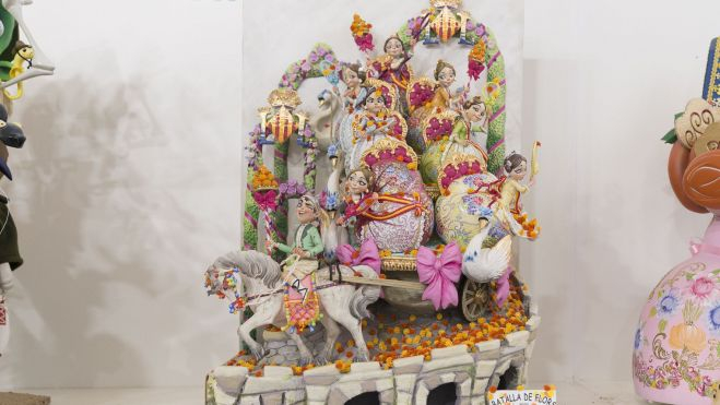 Museu Faller.La proposta és un homenatge a la Batalla de Flors, un festeig popular que a causa de la pandèmia no s'ha celebrat per segon any consecutiu. En la reproducció s'observa una carrossa amb set falleres llançant o esquivant els clavells.El ninot ha aconseguit 4.160 vots dels 15.638 emesos. L'escena forma part de