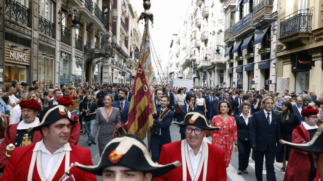 Com mana la tradició, durant el descens des del balcó municipal, la Senyera rebrà honors d'ordenança i baixarà sense inclinar-se. Una vegada finalitzada la marxa, es dispararà una mascletà en la plaça de l'Ajuntament. Ja a la vesprada, està prevista l'entrada de moros i cristians, que desfilarà pels carrers de la Pau, Poeta Querol, Barques, plaça de l'Ajuntament i Marqués de Sotelo.