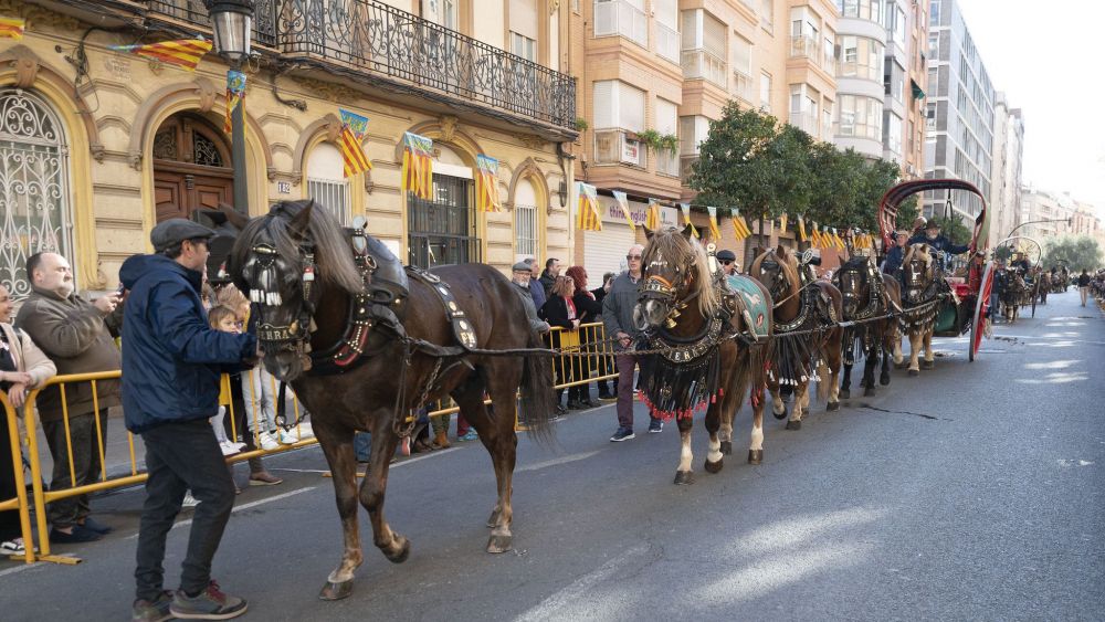 La desfilada seguirà amb els agents de la cavalleria de la Policia Local i l'entrada en carruatge de les Falleres Majors de València, la Clavariesa de les Festes i la Reina dels Jocs Florals de Lo Rat Penat. També participaran en la desfilada la cavalleria de la Policia Nacional i l'esquadró de cavalleria de la Guàrdia Civil. Les unitats canines de la Policia Local, la Guàrdia Civil i de la Unitat Militar d'Emergències també participaran en la benedicció. I tot això, al so de música tradicional valenciana amb tabalet i dolçaina.