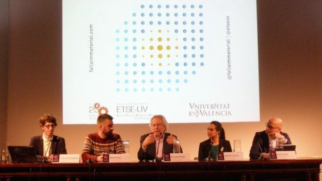 La Falla Immaterial és una iniciativa de divulgació científica de l'Escola Tècnica Superior d'Enginyeria de la Universitat de València. El seu objectiu és acostar la festa fallera a l'avantguarda en informàtica, multimèdia i ciència de dades, i promoure així una major originalitat i participació de les diferents disciplines.