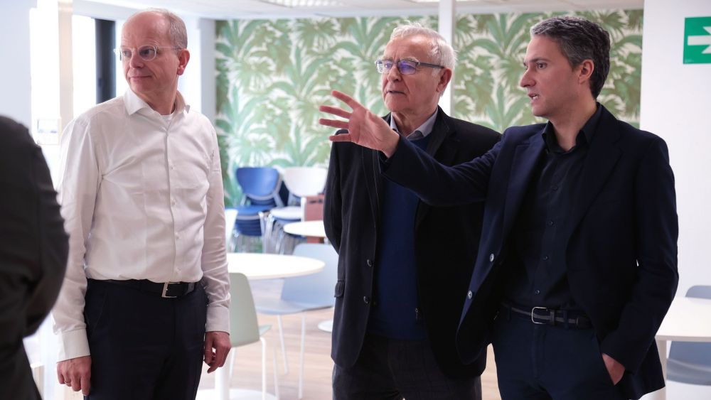 Joan Ribó, alcalde de València, juntament amb el director general de PowerCo Spain, Thomas Dahlem, i el director financer de la companyia, Javier Rivera