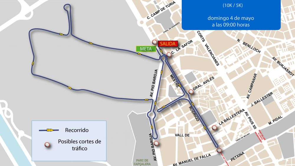 L'itinerari de la XII Carrera d'Empreses recorre les avingudes del Mestre Rodrigo, General Avilés i Pío Baroja, seguides de Pare Barranco i Partida de Dalt en el cas de la 10K. Aix