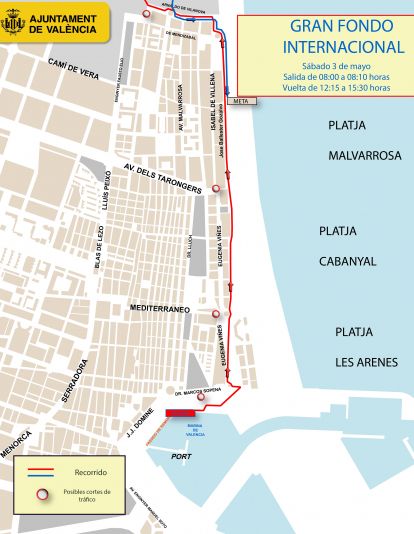 D'altra banda, els Poblats Marítims acullen, el dissabte 3 de maig, una marxa ciclista organitzada pel Club Esportiu Podi en col·laboració amb la Fundació Esportiva Municipal i que discorrerà per diferents termes municipals. L'eixida de València per a la prova de 148 i 177 km serà de 8 a 8.10 hores. La volta a València de totes les persones participants serà de 12.15 a 15.30 hores. Mentrestant, el Tinglado 2 2 de La Marina acollirà diverses activitats paral·leles.