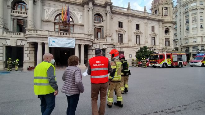 Un simulacre d'incendi de l'Ajuntament sorprén a multitud de persones a València