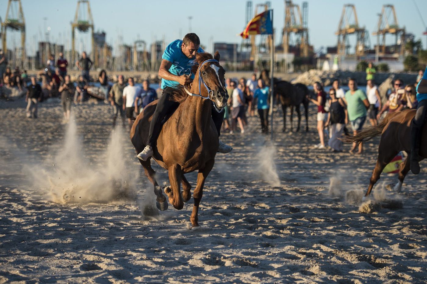 Genets i amazones competiran durant estos dies en carreres de 700 metres sobre l'arena de la platja a llom dels seus cavalls, i sense utilitzar cap mena de cadira de muntar. Esta festa tradicional la van iniciar els antics llauradors, que competien per aconseguir la preuada joia, un mocador de seda sobre una corona de llorer que es regalava a la dona estimada en finalitzar la carrera.