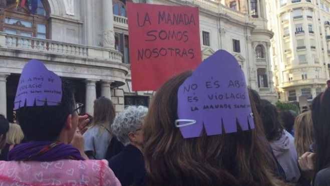 Hui s'ha fet pública la sentència a la Manada que finalment els condemna a 9 anys per un delicte d'abusos sexuals continuats però no per agressió sexual. A València s'ha convocat una concentració en repulsa per aquesta sentència en la qual han participat centenars de persones. "La Manada som nosaltres", "No és un abús, és una violació", han sigut alguns dels càntics que s'estan escoltant en aquests moments en la Plaça de l'Ajuntament.