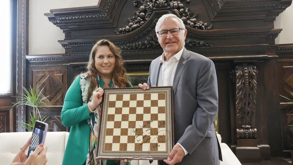 L'alcalde de València, Joan Ribó, al costat de la millor jugadora d'escacs de la història, Judit Polgar